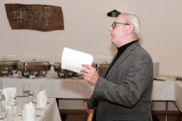 Vor dem gemeinsamen Essen kam dann als Überraschungsgast das Schweinfurter „Kolping-Urgestein“ Hans Driesel zu Wort. Seine geschliffene und launige Laudatio in Reimform erfreute und erheiterte nicht nur die Geehrten. Lang anhaltender Applaus war der Lohn für den beeindruckenden Vortrag.