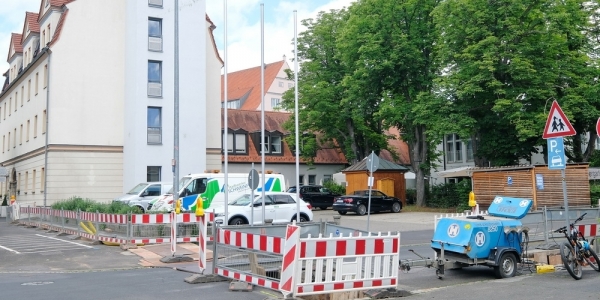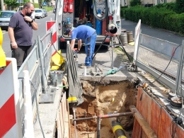 Damit die Bauarbeiten am 28.06.2021 – und damit eine Woche früher als ursprünglich geplant – beginnen können wurde eine schnelle Umverlegung der Gasversorgungsleitung notwendig. Bei der genauen Untersuchung der Rahmenbedingungen für den Neubau wurde festgestellt, dass die Gasleitung genau unter dem bisherigen Parkplatz in das Gebäude führt – und damit dem Neubau im Weg war.